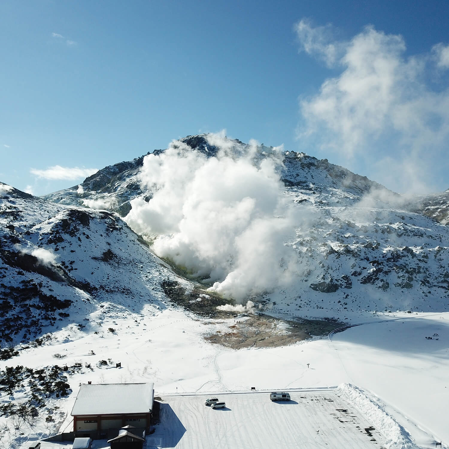 アイヌ語で「アトサヌプリ」、裸の山と呼ばれる硫黄山。山肌からはゴウゴウと音を立てながら噴煙がほとばしり、周囲には独特の硫黄の匂いが立ち込めています。
